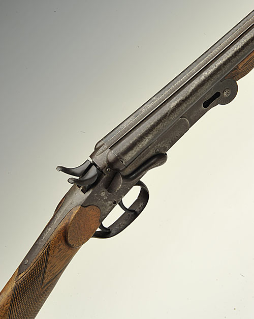 BELGIAN .410 DOUBLE-BARRELLED FOLDING SIDELEVER HAMMERGUN, n.v.s.n.