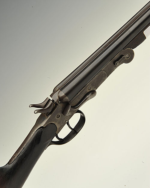 BELGIAN .410 DOUBLE-BARRELLED SIDELEVER FOLDING HAMMERGUN, n.v.s.n., 28in. black powder barrels