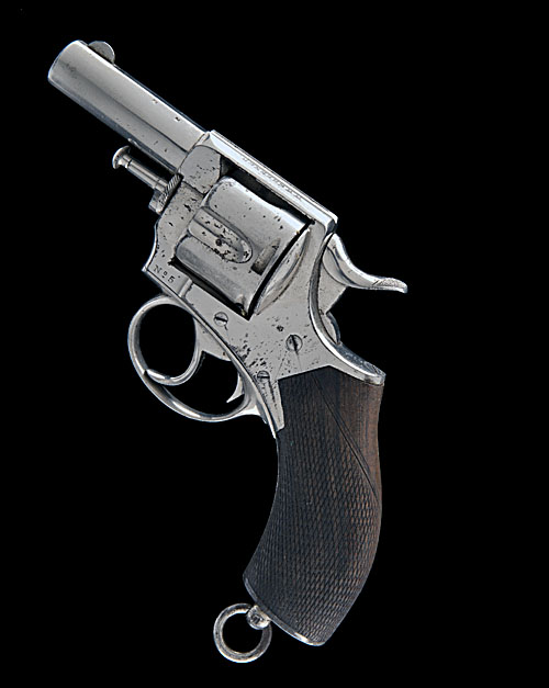 circa 1877, with 2 5/8in. ovoid barrel, the top-strap signed 'W.W. GREENER, 68 HAYMARKET LONDON', the side of barrel inscribed 'H.D. BROWN FROM MRS WESTALL', fluted cylinder, plain frame stamped 'No5', chequered one-piece walnut grip and butt-cap with lanyard ring, the whole retaining much original nickel-plate