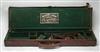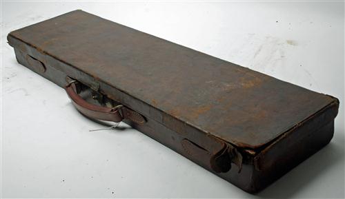 A SINGLE LEATHER HAMMERGUN CASE, suitable for 30in. barrels, lined with green baize, brass lock (key missing), the interior lid with a 'WILLIAM EVANS' gold tooled leather trade label, repaired handle, straps missing.
