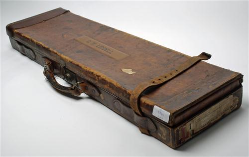 A BOSS & CO SINGLE LEATHER GUNCASE, fitted for 26in (could easily adapt to 30in.) barrels, lined with red baize, brass lock (key missing), the interior lid with a 'BOSS & CO' trade label, the exterior lid with 'G.W. LIDDELL'.