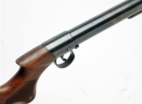 ** A .22 UNDER-LEVER SINGLE-SHOT AIR-RIFLE SIGNED BSA, MODEL 'STANDARD IMPROVED MODEL D', serial no. S71753, circa 1913, with sighted 19 1/2in. barrel, loading tap aperture marked '2 LOAD' together with the 'BSA Piled arms' trademark, plain air-chamber, trigger unit marked 'PAT 30338-10', saw-backed chequered pistol-grip stock and side-catch loading lever, refinished throughout