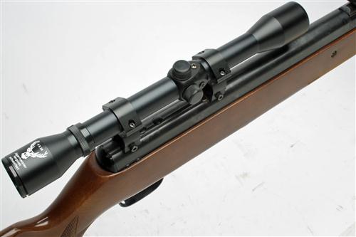A .177 BREAK-BARREL AIR-RIFLE SIGNED ANSCHUTZ, MODEL '335', serial no. 021398, circa 1980, with blued, sighted 18 1/2in. barrel, plain air-chamber grooved for a telescopic sight and right-handed beech stock TOGETHER WITH a 'JAEGERMEISTER' 4X28 telescopic sight and mounts