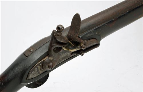 * A 13-BORE FLINTLOCK MUSKET SIGNED 'TOWER', circa 1840, with 38in. barrel, military-style lock and hand-rail type three-quarter stock with brass mounts, exposed iron surfaces pitted and corroded