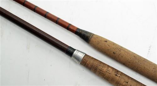 TWO VINTAGE FISHING RODS, a split cane 8 foot two piece rod 'HOLBROWS' rod, a three piece two handed rod greenheart