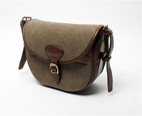 A NEW & UNUSED CANVAS & LEATHER SUEDE LINED CARTRIDGE BAG,