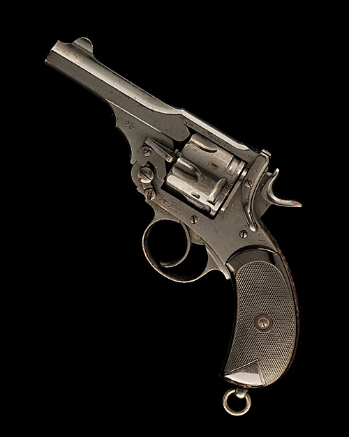 for circa 1900, with 4in barrel (proved 2011), fluted cylinder, holster guides, plain frame marked 'WEBLEY PATENTS MKIV' together with the 'winged bullet' trademark, birds-head grip with hard-rubber chequered grip plates, lanyard ring to heel, the whole retaining much original finish throughout