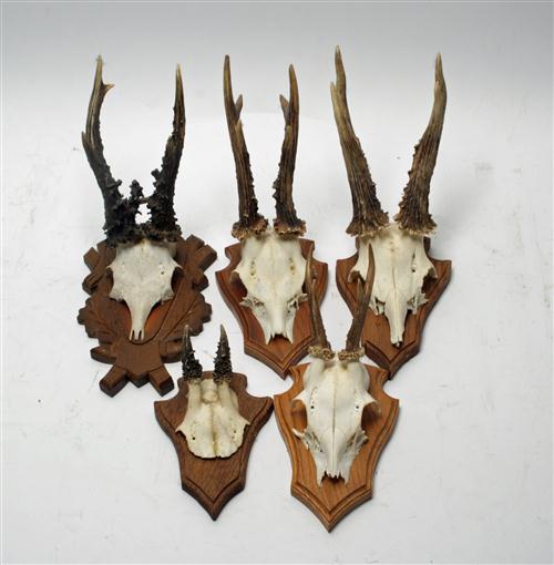 FIVE ROE SKULL MOUNT TROPHIES Estimate £50-70