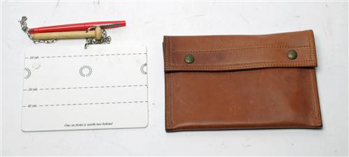 THREE HOLLAND & HOLLAND BUTT MARKER WITH LEATHER WALLET.