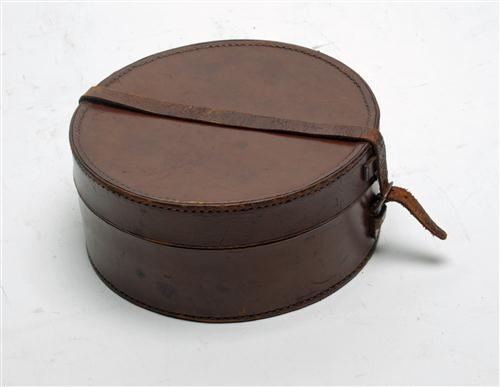 A VINTAGE LEATHER COLLAR BOX. Estimate £15-20