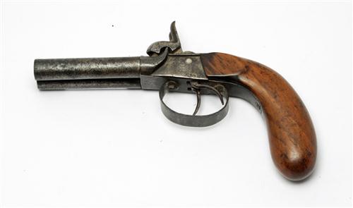 A 54-BORE PERCUSSION DOUBLE-BARRELLED POCKET-PISTOL, UNSIGNED,