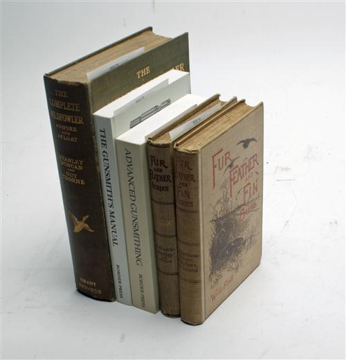 A COLLECTION OF GUN RELATED BOOKS, including two volumes of 'FUR FEATHER & FIN SERIES' (WILD-FOWL & THE PHEASANT) by L.H. DE Visme Shaw, 'ADVANCED GUNSMITHING' , 'THE GUNSMITH'S MANUAL', 'THE COMPLETE WILDFOWLER (ASHORE & AFLOAT), by Stanley Duncan & Guy thorne.