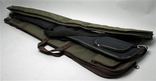 THREE SINGLE CANVAS FLEECE LINED GUNSLIPS. Estimate £30-50