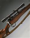 LEE ENFIELD .303 BOLT-MAGAZINE SPORTERISED SERVICE RIFLE, serial no, 8256, 22 3/16in. nitro barrel, with 'BISLEY DELUX 4 x 32' telescopic sight, canvas sling