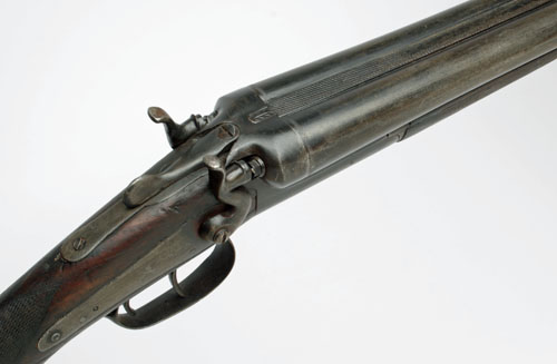 BELGIAN 12-BORE TOPLEVER HAMMERGUN, serial no. 8587, 30in. black powder barrels, 2 1/2in. chambers