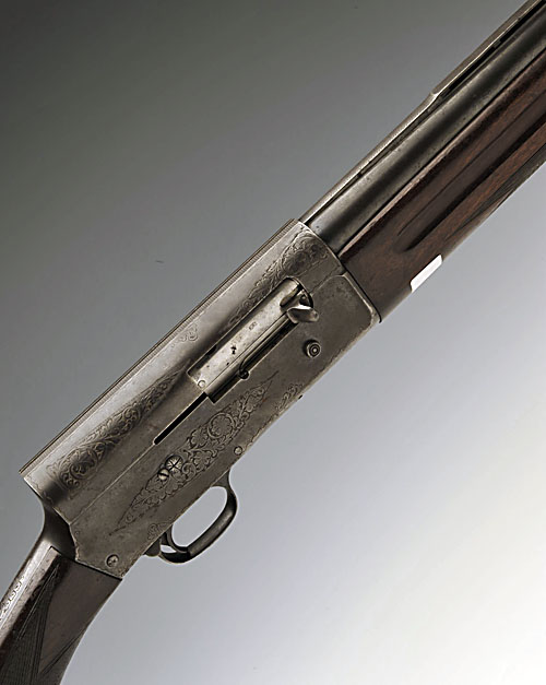 FN BROWNING 12-BORE 'AUTO 5' SEMI-AUTO SHOTGUN, serial no. 465806, 31 1/2in. nitro barrel with raised top-rib, 2 3/4in. chamber, bored approx. full choke, the action partially carved in relief with foliate scroll motifs