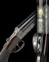 catalogue number 12233, 25in. nitro chopperlump barrels with raised sight rib engraved with flowing acanthus scrollwork, open sights and one folding leaf sight, gold-inlaid with sighting lines and '50' and '75', ramp-mounted bead fore-sight, the breech end with further acanthus details and a single gold line, treble-grip round-action with hidden third bite, automatic safety with gold 'SAFE' detail and with additional push button release, carved fences, articulated front trigger, double rolled-edge triggerguard, action and furniture carved in relief on a deeply matted background with bold scrolling acanthus with gold detailing and gold-inlaid floral motifs, the underside with an ornately framed vignette of a bull buffalo set with a gold backdrop, the makers name set underneath in a golden cartouche, the triggerplate signed 'L. SABATTI', 15 1/8in. well-figured pistolgrip stock with cheekpiece, pale horn pistolgrip-cap and including 1in. rubber recoil pad, beavertail fore-end, weight 9lb. 14oz.
