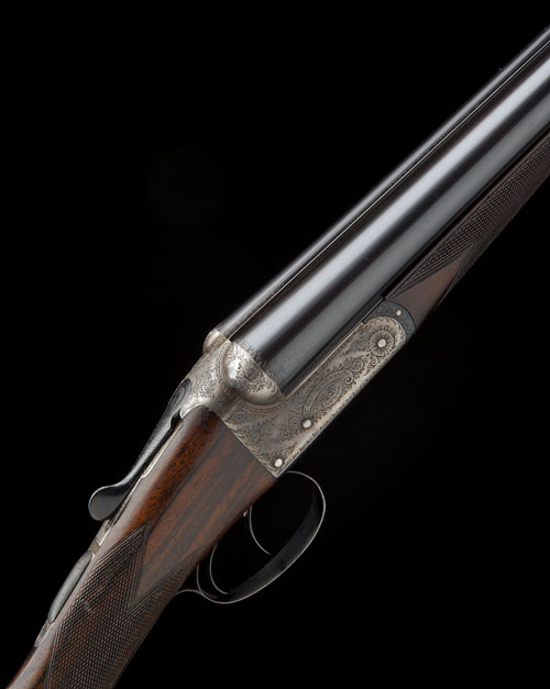 serial number on barrel loop only, 30in. nitro replacement barrels, rib engraved 'H. EDWARDS. GUN MAKER. NEWPORT.', 2 1/2in. chambers, bored approx. true cyl. and 1/2 choke, automatic safety with gold-inlaid 'SAFE' detail, border and scroll engraving, retaining some colour-hardening and finish, 13 7/8in. figured stock including buttplate, weight 6lb. 12oz.