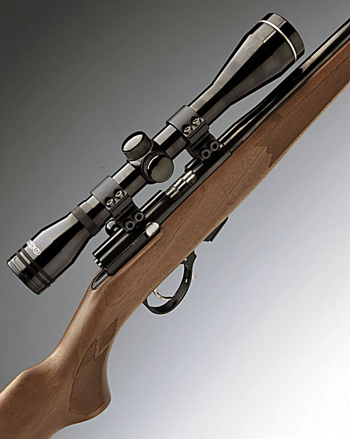 MUSGRAVE .22(LR) 'AMBIDEX' STRAIGHT-PULL BOLT-MAGAZINE SPORTING RIFLE, serial no. D0330, left-handed configuration, 23 1/2in. nitro barrel threaded for a sound moderator, fitted with a Silver Antler telescopic sight, pistolgrip stock with sling swivels, 14 1/4in. pull