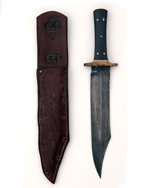 A LARGE BOWIE-KNIFE WITH RHINOCEROS-HORN HILT SIGNED G.WOSTENHOLM & SON, SHEFFIELD,