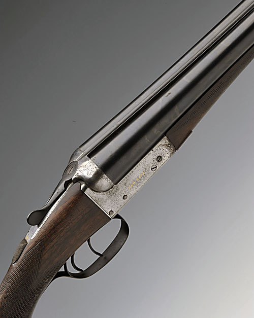 GEO BATE 12-BORE BOXLOCK NON-EJECTOR, serial no. 3051, 28in. nitro barrels, the rib engraved 'GEO. BATE. 132 STEELHOUSE LANE. BIRMINGHAM.', 2 1/2in. chambers, bored approx. imp. cyl. and full choke, treble-grip action, removable striker discs, automatic safety with gold-inlaid safe detail, border engraving with the makers name gold-inlaid, left cocking dog retaining screw missing (cocking dog present but separate), 13 1/4in. semi-pistolgrip stock