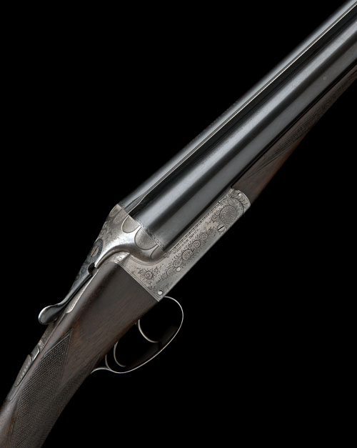 25in. nitro reproved barrels with matt Churchill-rib, tubes engraved 'WATSON BROS. GUNMAKERS. 13. PALL MALL. LONDON. W.', 2 1/2in. chambers, bored approx. imp. cyl. and 1/2 choke, arcaded fences, automatic safety with silver-inlaid 'SAFE' detail, border and scroll engraving. brushed bright and reblued finish overall, 14 1/2in. stock, weight 6lb. 6oz., in its lightweight canvas case
