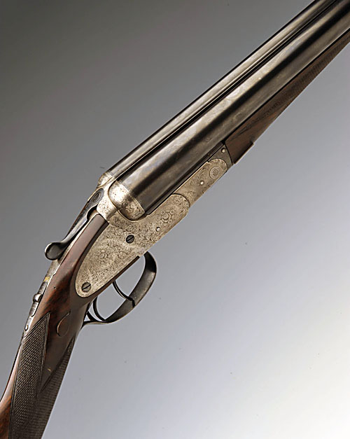 COGSWELL & HARRISON 12-BORE (CROSSOVER) SIDEPLATED BOXLOCK EJECTOR, serial no. 55474, 28in. nitro barrels, 2 1/2in. chambers, bored approx. full choke in both, treble-grip action, bouquet and scroll engraving, the decorative sideplates engraved en suite, bright finish, metalwork swept, 15 1/2in. stock (right shoulder left eye) including 2 1/2in. extension, original stock with pinned repair to toe