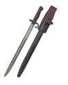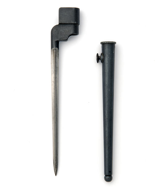 the first a Pattern 1907 with quillion, the 17in. fullered blade signed 'SANDERSON' and dated for January 1910, the hilt stamped 'W.SR.' over 'R.720', together with its original MKI leather scabbard dated for 1909 with iron drag button and a period South African leather frog, much original finish throughout , the second a No4MKI spike bayonet of cruciform type, complete with scabbard
