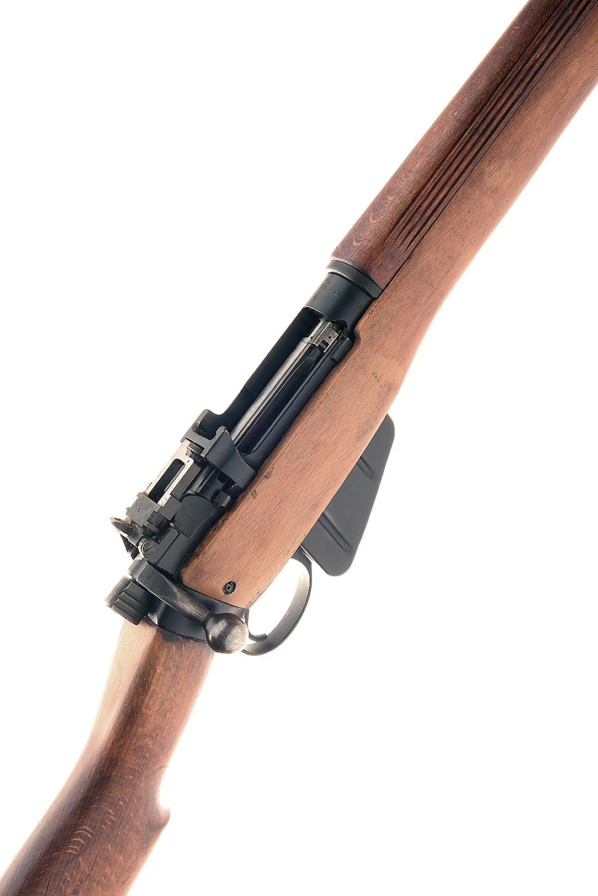 LEE ENFIELD .303 'No 4 MK 2 (F)' BOLT-MAGAZINE SPORTING RIFLE, serial no. PF97706, 25 1/8in. nitro barrel, ramp-mounted bead fore-sight, folding rear battle sight, manual safety, detachable box magazine, sling swivels