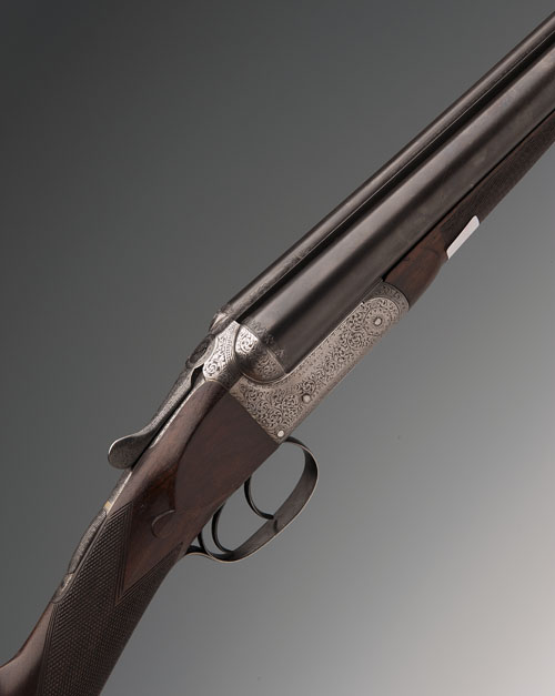 JACKSON 12-BORE BOXLOCK EJECTOR, serial no. 39001, 28in. replacement nitro barrels, rib engraved 'NEW BARRELS BY WESTLEY RICHARDS & CO. LONDON', 2 1/2in. chambers, bored approx. true cyl. in both, treble-grip action, automatic safety with gold-inlaid 'SAFE' detail, border and scroll engraving, bright finish, 14 3/4in. replacement stock