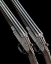 28in. replacement nitro barrels (No.2 nitro reproved in 2012), the ribs gold-inlaid '1' and '2' at the breech-ends and engraved with a flash of scroll engraving, 2 1/2in. chambers, bored approx. 1/4 and 1/2 choke (No.1) 1/2 choke in both (No.2), toplevers gold-inlaid '1' and '2', automatic safeties with gold-inlaid 'SAFE' details, patent hand-detachable sidelocks, gold-inlaid cocking indicators, best fine border, bouquet and scroll engraving, 14 1/4in. figured stocks including 3/4in. rubber recoil pads, weight 6lb. 4oz. (No.1) 6lb. (No.2), in their tan leather double motorcase