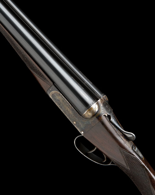 28in. nitro barrels, 2 3/4in. chambers, bored approx. 1/4 and 1/2 choke, automatic safety, border and scroll engraving, retaining much original colour-hardening and finish, 13 1/2in. crossover stock (right shoulder left eye, metalwork swept), weight 6lb. 4oz.