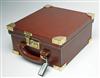 A BRASS-CORNERED LEATHER CARTRIDGE MAGAZINE,