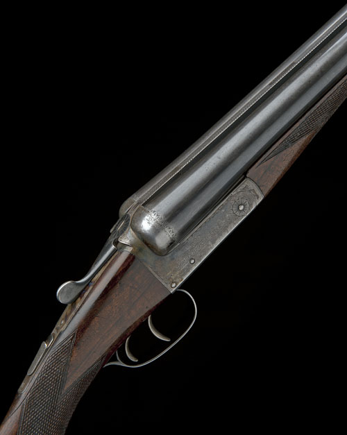 30in. nitro barrels with raised matt rib, engraved 'THE BRENT', the tubes engraved 'THOMAS BLAND & SONS. 4 & 5 WILLIAM IV ST. WEST STRAND. LONDON. W.C. 2', 3in. chambers, bored approx. 3/4 choke in both, treble-grip action, automatic safety with silver-inlaid 'SAFE' detail, border engraving, retaining some original colour-hardening and finish, 15in. semi-pistolgrip stock, weight 7lb. 8oz.