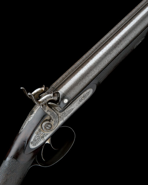 A 13-BORE PERCUSSION DOUBLE-BARRELLED SPORTING GUN, serial no. 1324,