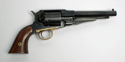 A REPRODUCTION .36 PERCUSSION SIX-SHOT REVOLVER SIGNED WESTERNERS ARMS, MODEL 'REMINGTON NAVY, serial no. 31766, with octagonal blued 6 1/2in. barrel, plain cylinder, blued frame and smooth walnut grips