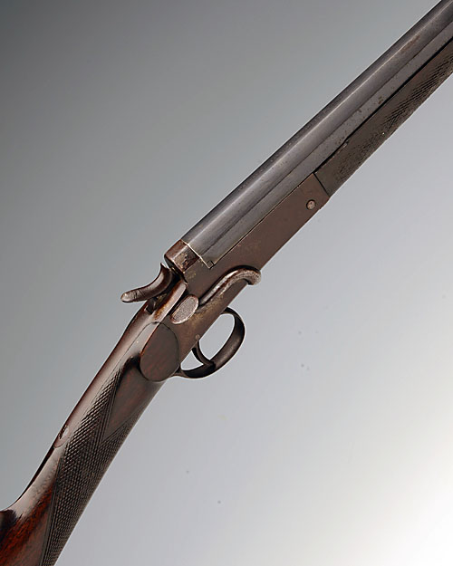 TRULOCK & HARRISS CONVERTED .410 (SMOOTHBORE) SINGLE-BARRELLED SIDELEVER HAMMER ROOK RIFLE, serial no. 48860, converted from .300, 26in. nitro reproved turned octagonal to round barrel, top flat engraved 'TRULOCK & HARRISS. 9, DAWSON ST. DUBLIN.', 2 1/2in. chambers, bored approx. imp. cyl., plain action, 14 1/2in. stock