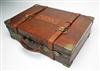 A BRASS-BOUND OAK AND LEATHER CARTRIDGE MAGAZINE,