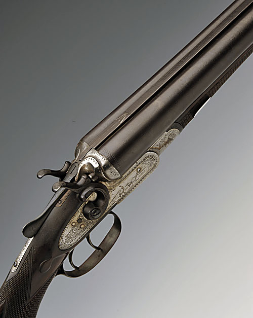 WARD & SONS 12-BORE TOPLEVER HAMMERGUN, serial no. 71874, 30 1/4in. nitro reproved damascus barrels, 2 1/2in. chambers, bored approx. true cyl. and 3/4 choke, treble-grip action, rebounding locks with carved c-scroll hammers, 14 1/2in. pistolgrip stock