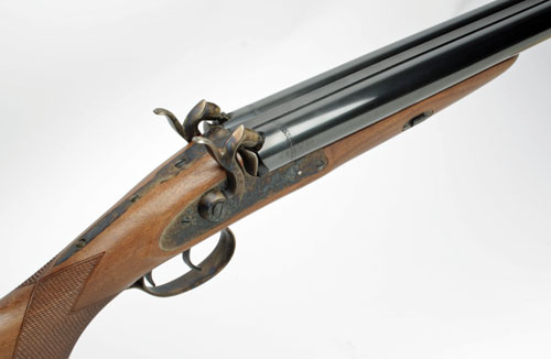 A REPRODUCTION 10-BORE PERCUSSION DOUBLE-BARRELLED SPORTING GUN SIGNED PEDERSOLI, serial no. K35402,