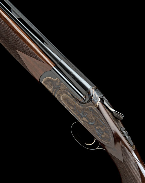 32in. nitro barrels with raised 8mm ventilated matt top-rib, 3in. chambers, multichokes (with spares), hold-open toplever, automatic safety with integral barrel selector switch, bouquet and scroll engraving, retaining full original colour-hardening and finish, 14 1/2in. semi-pistolgrip stock including 1/2in. wooden extension, weight 6lb. 13oz., in its makers universal case