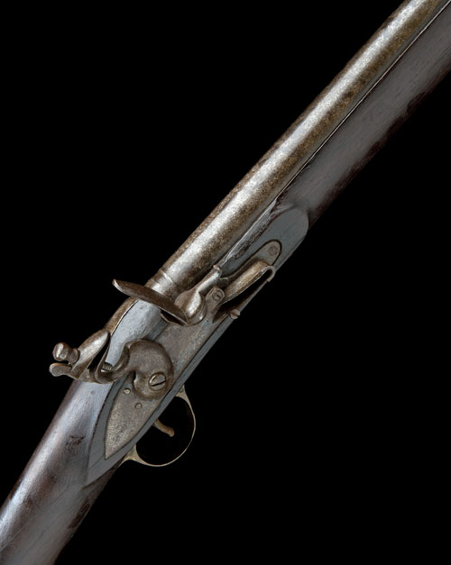 Indian, circa 1840, in loose imitatation of a 'Brown Bess' service musket, with heavy 44in. barrel, block fore-sight, banded breech, military-style plain lock, walnut full-stock (cracked at toe and behind lock), brass furniture and iron ramrod, exposed iron surfaces with light corrosion