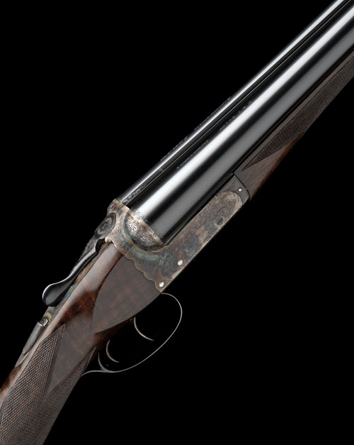 28in. nitro barrels, tubes engraved 'W. & C. SCOTT GUNMAKERS. BIRMINGHAM. ENGLAND.', 2 3/4in. chambers, bored approx. imp. cyl. and 1/4 choke, scroll-back action, automatic safety, border and scroll engraving, the underside engraved with the model designation, 14 3/4in. tiger stripe figured stock, weight 6lb. 7oz.