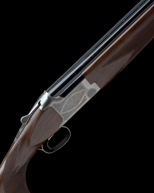 30in. nitro barrels with 10mm ventilated matt top-rib with intermediate bead sight, 3in. chambers, multichokes (with spares), hold-open toplever, manual safety with integral barrel selector switch, adjustable single-trigger, engraved with acanthus and foliate motifs, silver finish, 14 7/8in. pistolgrip stock including 5/8in. rubber recoil pad, weight 8lb. 2oz., in its makers carton