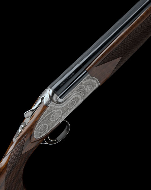 28in. nitro barrels with 8mm ventilated matt top-rib, 3in. chambers, multichokes (with spares), hold-open toplever, automatic safety with integral barrel selector switch, bouquet and scroll engraving, bright finish, 14 1/2in. pistolgrip stock, weight 7lb. 2oz., in its makers universal case