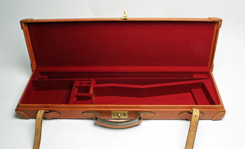 suitable for 28in. small bore barrels, lined with red baize, brass lock (including key)