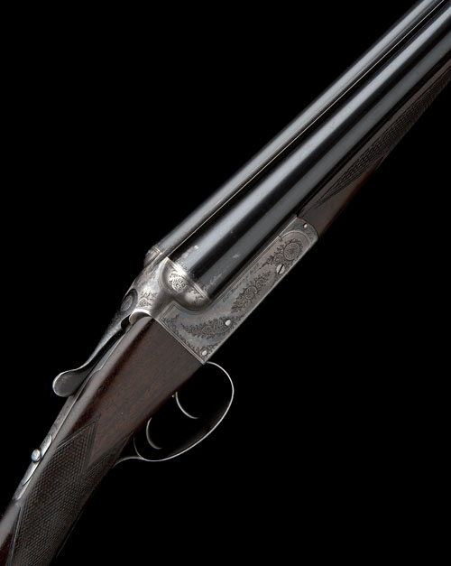 27in. nitro barrels, rib engraved 'C.S. ROSSON & CO. RAMPANT HORSE STREET. NORWICH.', 2 1/2in. chambers, bored approx. 1/4 and 1/2 choke, treble-grip action, automatic safety, border and scroll engraving, retaining traces of colour-hardening and renewed finish, 15in. stock including 7/8in. wooden extension, weight 5lb. 13oz., in its lightweight canvas case