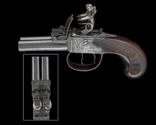 A 60-BORE FLINTLOCK DOUBLE-BARRELLED BOXLOCK POCKET PISTOL,