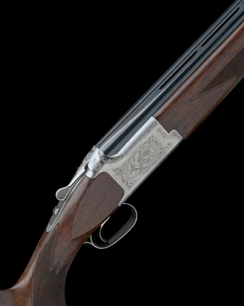 28in. nitro reproved barrels with 13mm ventilated matt top-rib, 2 3/4in. chambers, multichokes (no spares), hold-open toplever, manual safety with integral barrel selector switch, adjustable single trigger, silver action with scenes of mallard and pheasant, 14 3/8in. pistolgrip stock including 5/8in. rubber recoil pad, weight 7lb. 11oz.