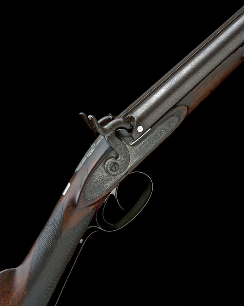 A CASED 14-BORE PERCUSSION DOUBLE-BARRELLED SPORTING GUN WITH BARRELS BY THOMAS BOSS, serial no. 772,